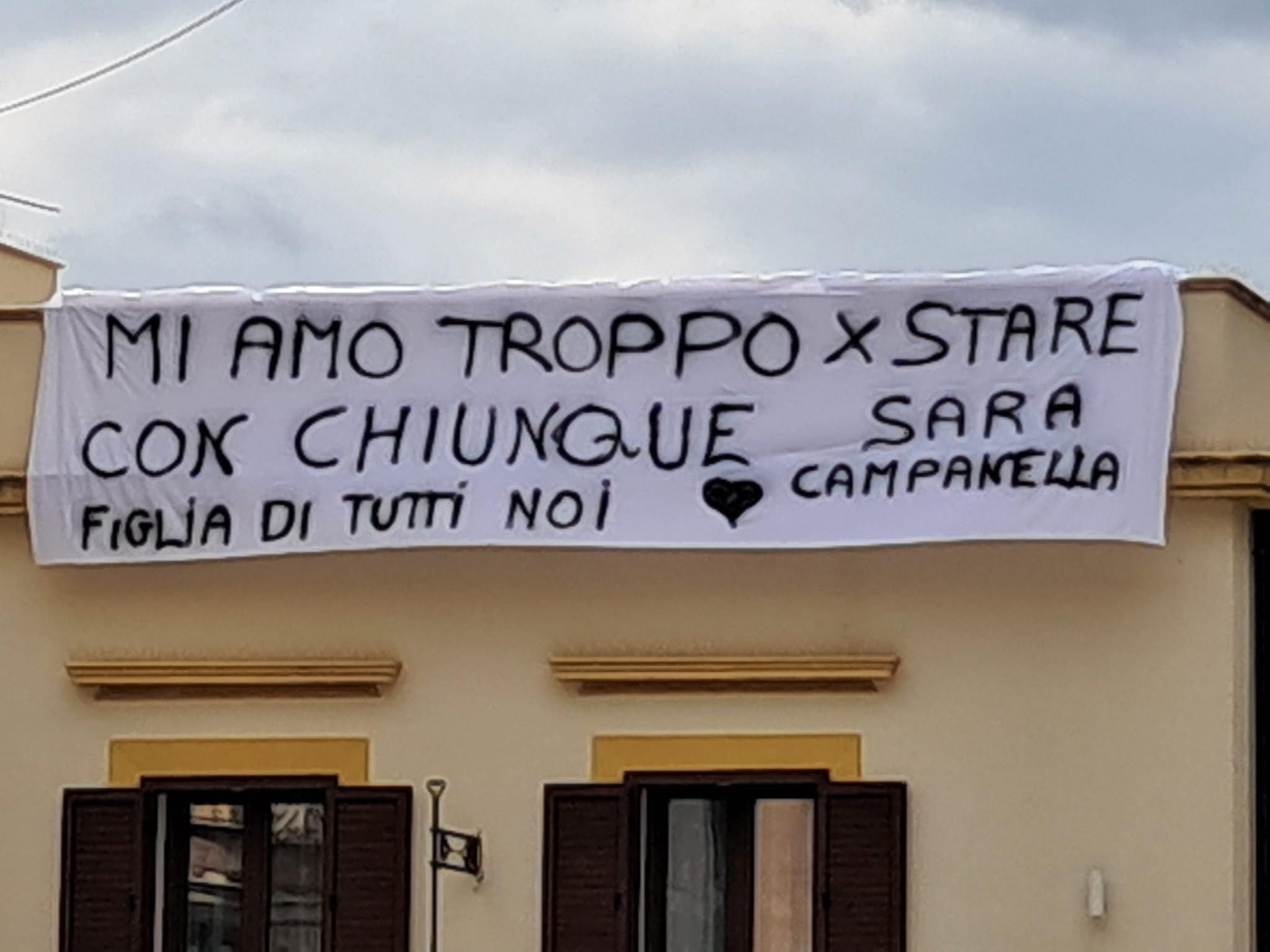 «Mi amo troppo per stare con chiunque. Sara Campanella figlia di tutti noi». Un lenzuolo bianco è stato srotolato in una palazzina nella piazza di Misilmeri.
