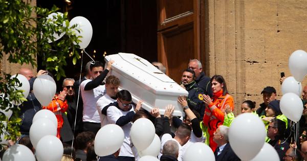 La bara bianca ha lasciato la chiesa e tanti palloncini bianchi sono stati liberati salendo in volo. Adesso l’ultimo viaggio verso il cimitero del paese.