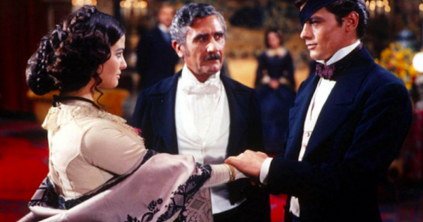 Claudia Cardinale, Angelica, Burt Lancaster nel ruolo del principe di Salina, Alain Delon, Tancredi nel film di Luchino Visconti