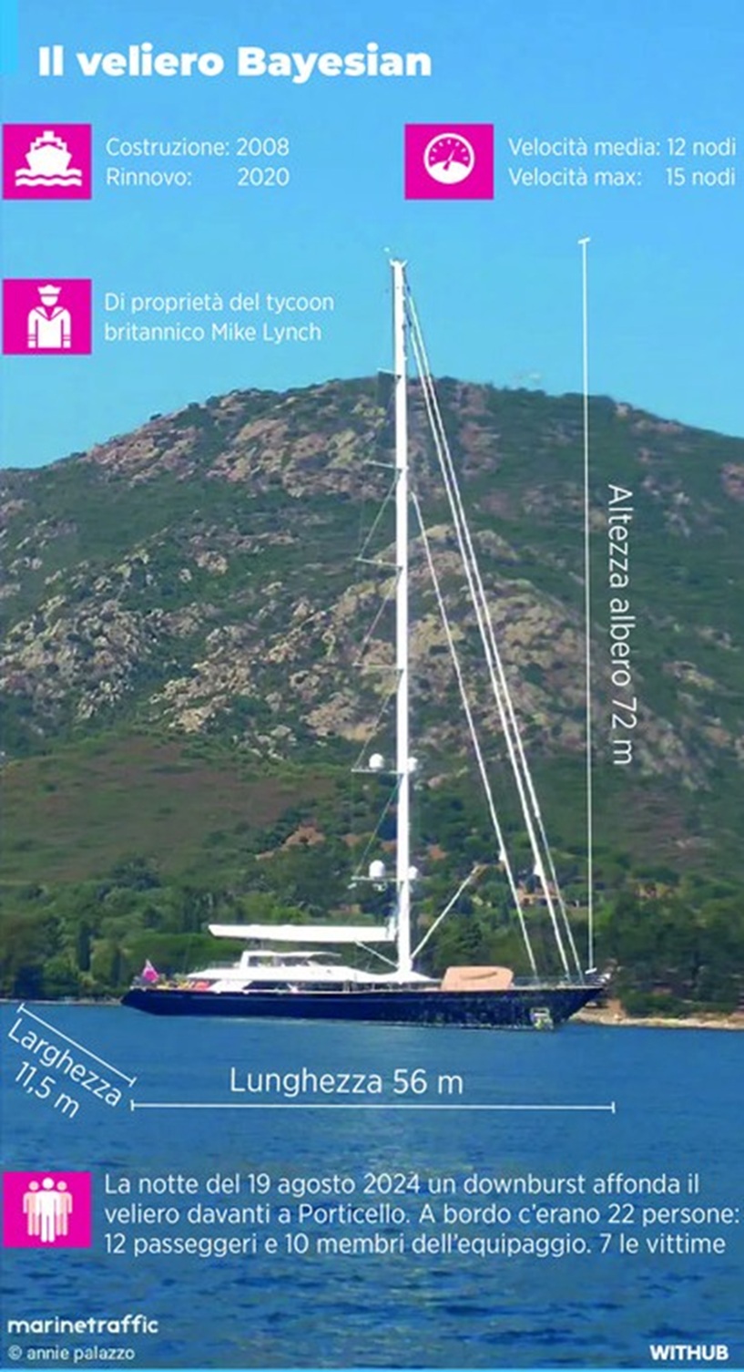 Nel naufragio persero la vita sette persone tra cui il magnate inglese Mike Lynch, della figlia Hannah, di Jonathan Bloomer, della moglie Judy, di Chris Morvillo e della moglie Neda, e di Thomas Recaldo. Altre 15 persone sono sopravvissute.