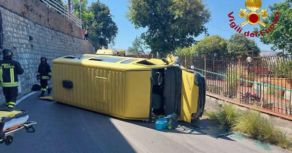 Si rompono i freni e un pulmino con bambini a bordo si ribalta a Palermo: sei feriti