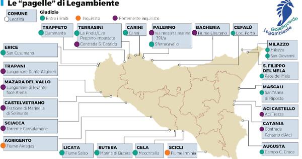 Tra i 4 punti monitorati in provincia di Trapani, 3 si sono rivelati fortemente inquinati: la spiaggia sul lungo mare Dante Alighieri di Trapani, il mare presso lo scarico del depuratore a Marinella di Selinunte (Castelvetrano) e la foce del fiume Delia a Mazara del Vallo. Solo il punto vicino all’ex tonnara di San Cusumano – Erice è risultato entro i limiti.