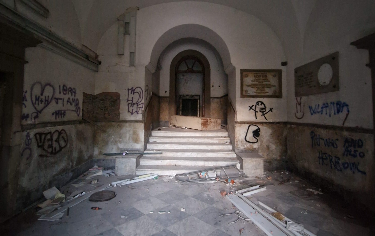 L’edificio è enorme: alto oltre venti metri, all’interno ha tutti i segni di una chiusura che sembra arrivata improvvisa e inattesa. Ma non è certamente l’unico in zona: il palazzo all’angolo con via Bambino e fino a non troppi anni fa sede di Asp, è nelle stesse condizioni, con un locale al piano terra senza porte e pieno di quelli che un tempo dovevano essere arredi da ufficio. Nascosta agli sguardi, ma accessibile dall’edificio storico principale, c’è anche un altra grande struttura abbandonata, anche questa un tempo appartenuta all’ospedale.