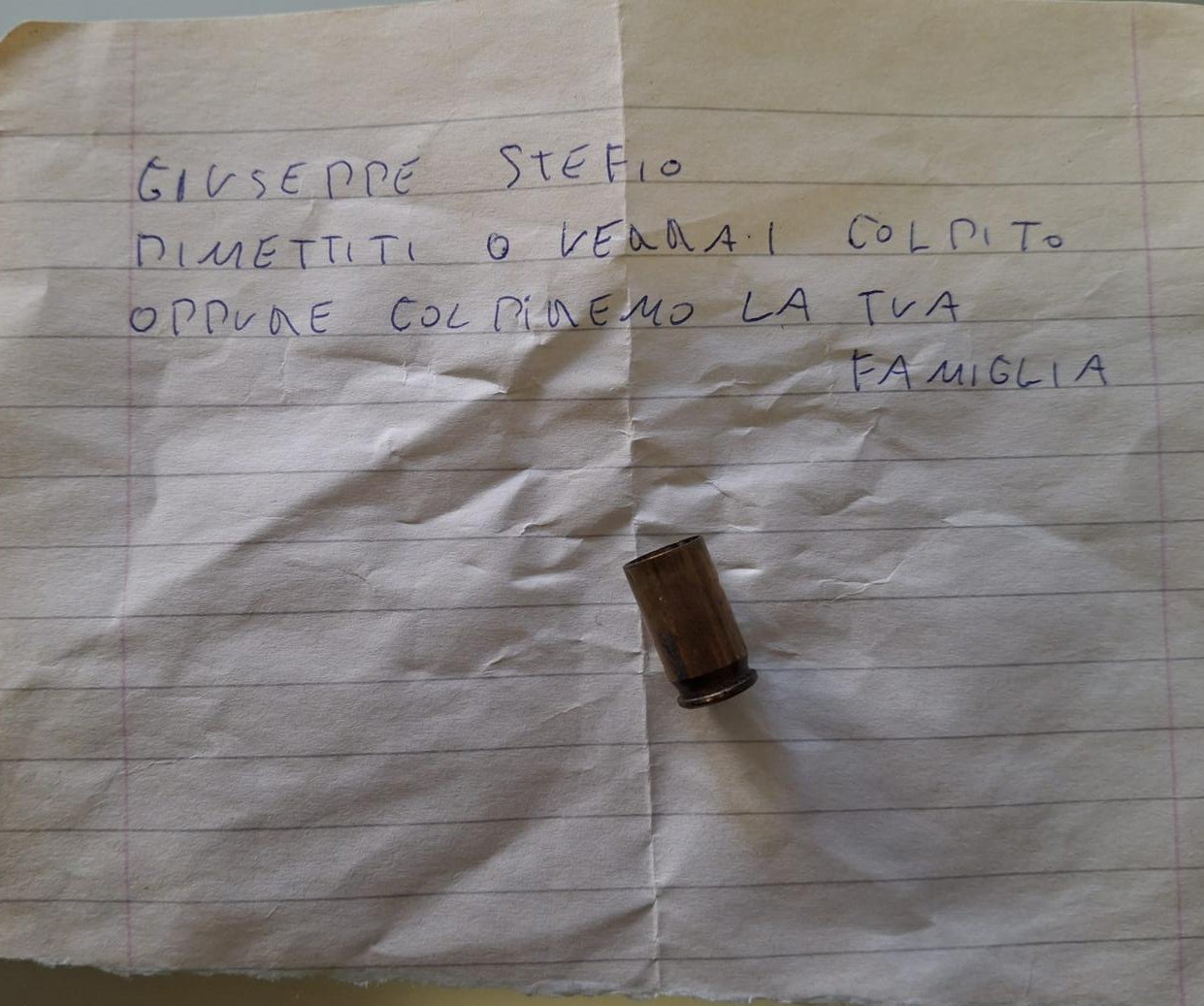 Grave episodio intimidatorio ai danni del sindaco di Carlentini, Giuseppe Stefio, raggiunto ieri mattina da una busta anonima contenente un bossolo di pistola e minacce di morte con la richiesta esplicita di dimettersi dall’incarico.