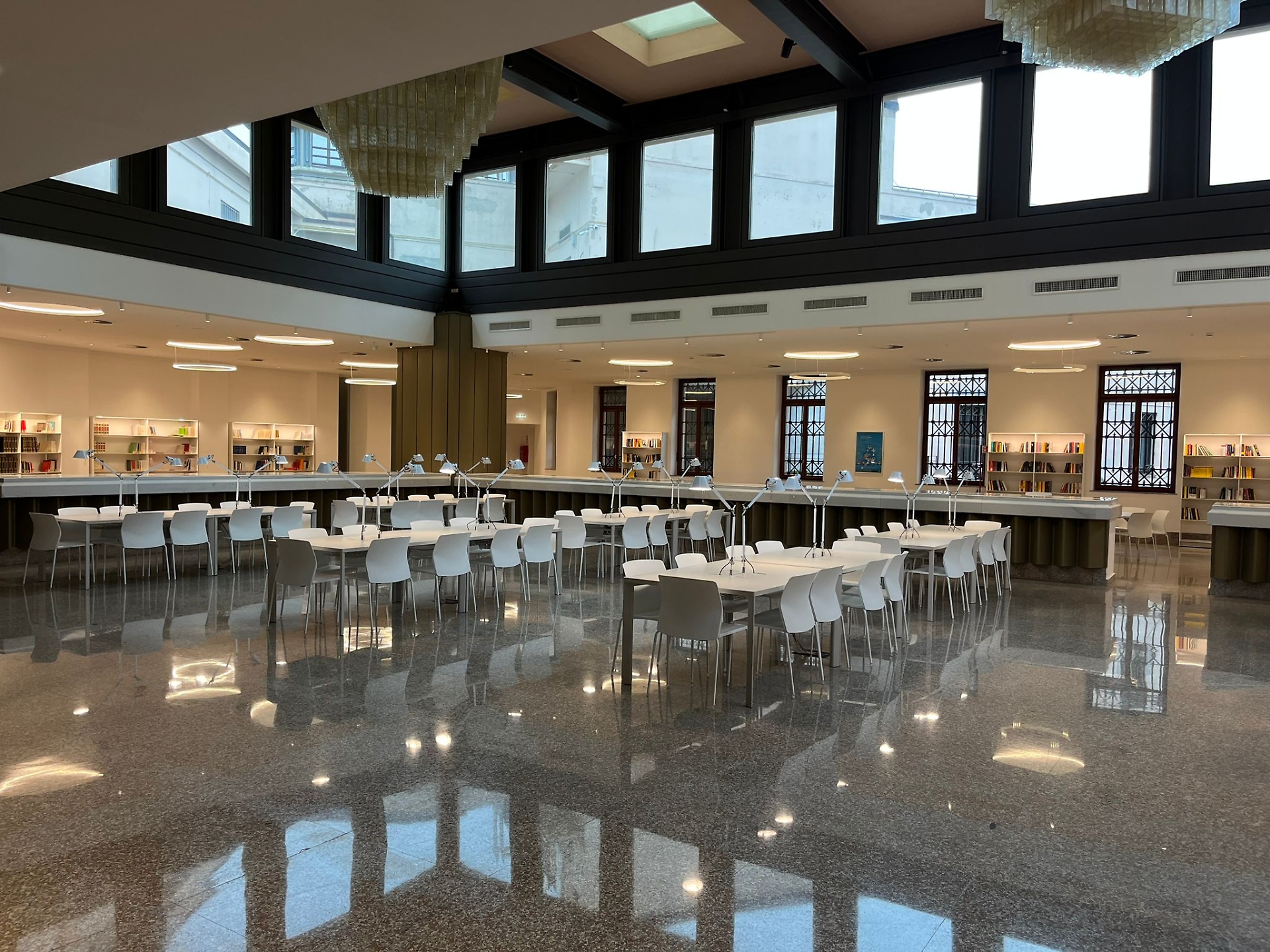 Cuore del polo è la grande sala lettura, progettata per offrire condizioni ottimali di studio: postazioni attrezzate con prese elettriche e illuminazione individuale, aree lounge dedicate alla lettura informale e librerie con volumi a disposizione dell’utenza. Nei prossimi mesi è prevista l’apertura progressiva di ulteriori spazi bibliotecari e delle aree museali che accoglieranno le collezioni dell’Ateneo, insieme a un calendario di iniziative culturali rivolte alla comunità universitaria e alla cittadinanza. All’interno della struttura troverà spazio anche il Gabinetto di lettura.