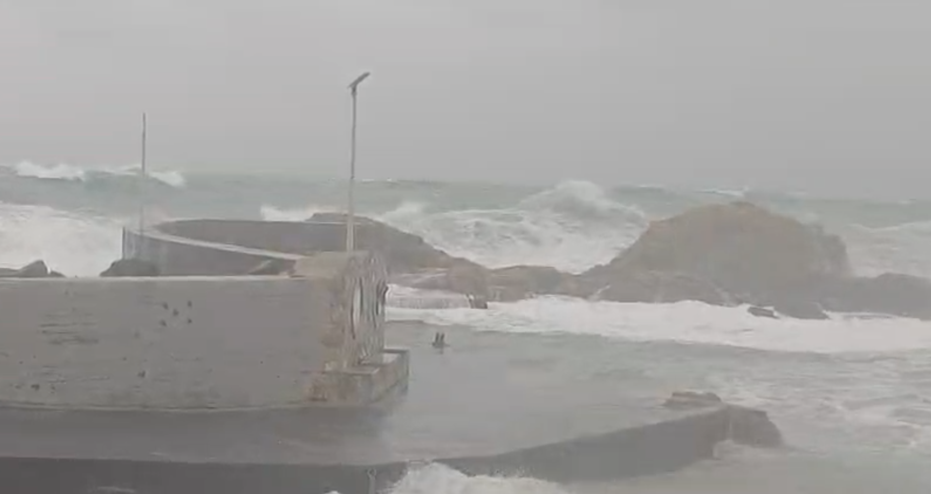 A Giardini Naxos i marosi stanno colpendo il lungomare e in particolare l'area del molo Saia.