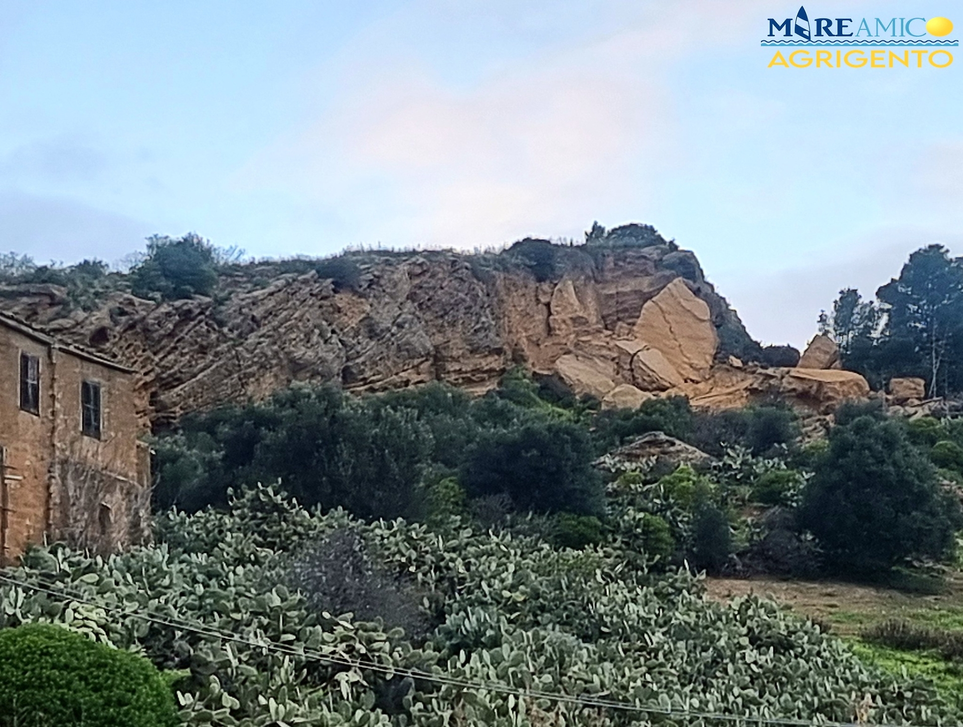 Allo sbalzo della luce pomeridiana, il costone che domina la via Panoramica dei Templi sembra scolpito da secoli immoti. Poi, all’improvviso, il rumore sordo: un lembo di collina si stacca, scivola lungo il versante e si ferma a pochi metri dall’asfalto che porta verso l’ingresso del Tempio di Giunone. Sotto, la strada più iconica di Agrigento; sopra, l’area individuata per la futura “casa dei libri” del Parco archeologico. A segnalare il nuovo cedimento è l’associazione ambientalista Mareamico, che da anni ripete lo stesso monito: “Qui la terra è fragile, e sta cedendo”. La vicinanza al sito monumentale riporta al centro due questioni: la sicurezza del versante e la destinazione del fabbricato individuato dal Parco come potenziale sede di una biblioteca tematica, che nelle intenzioni di alcuni avrebbe dovuto essere intitolata a Marcello Dell’Utri.