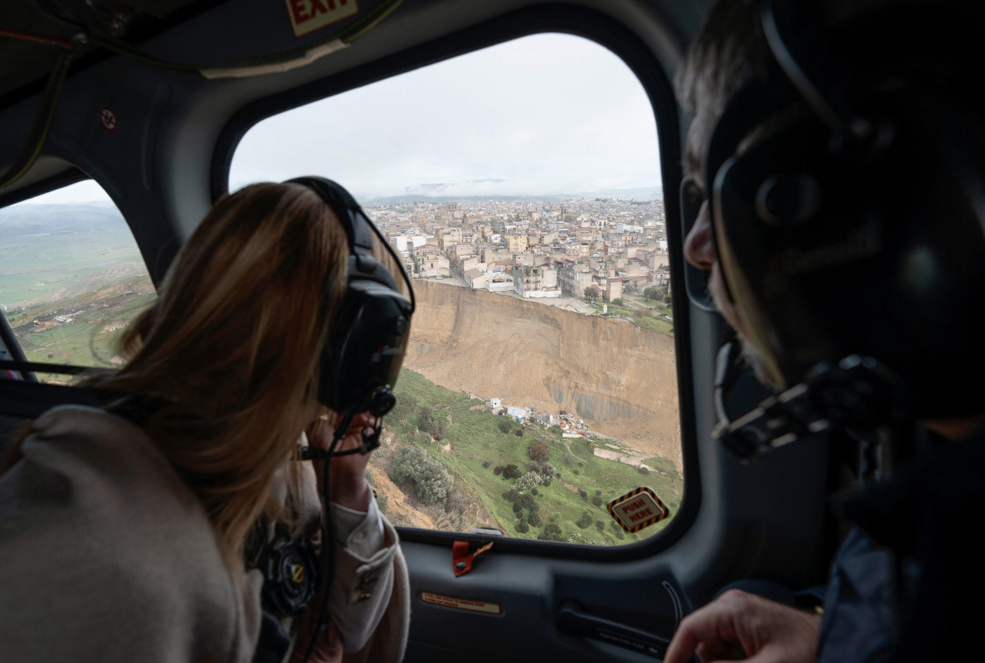 Giorgia Meloni lascia Niscemi dopo vertice in Municipio e il sorvolo in elicottero