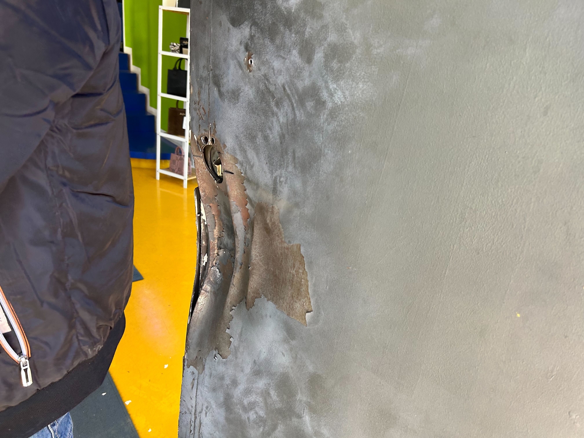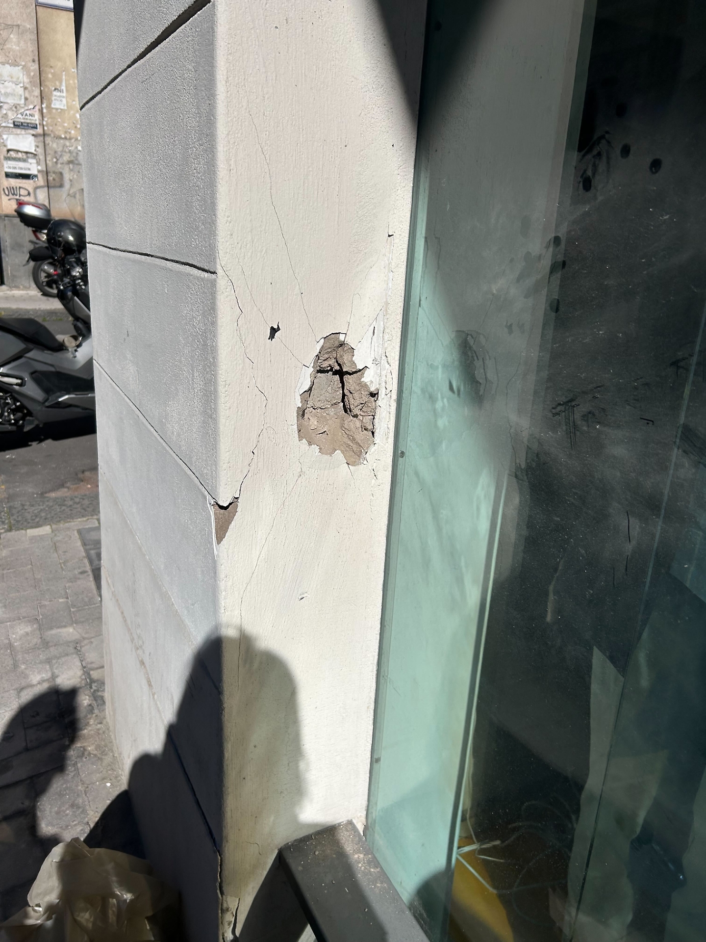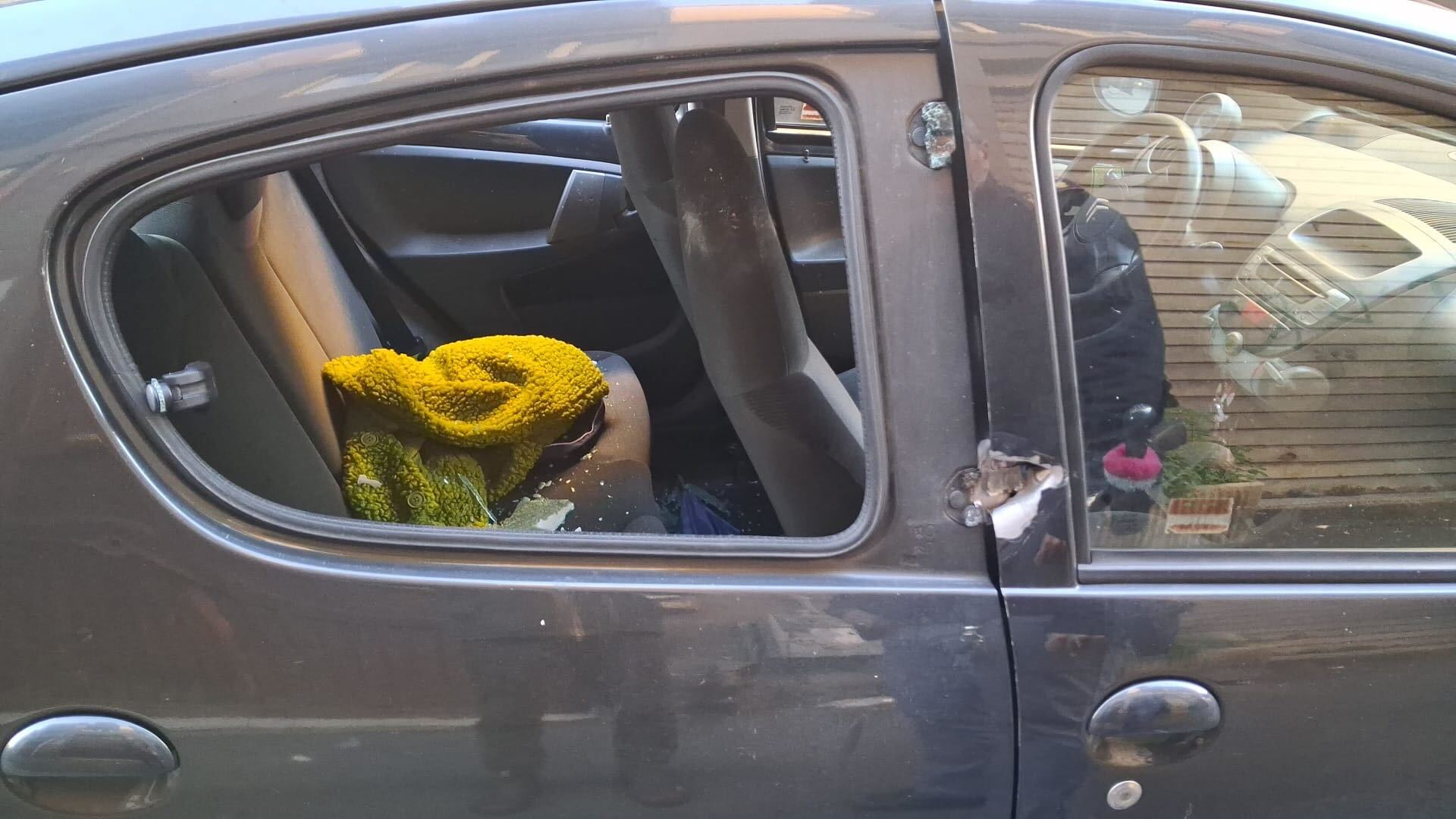 Le schegge della deflagrazione hanno colpito anche due automobili parcheggiate. Una vettura è stata trapassata da lato a lato.