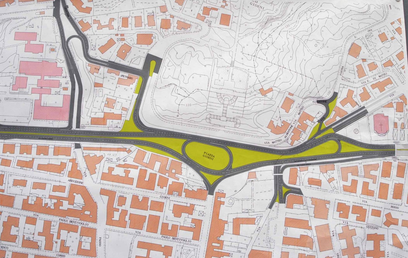 Il progetto originario di D'Urso per l'area del Tondo Gioeni post abbattimento ponte