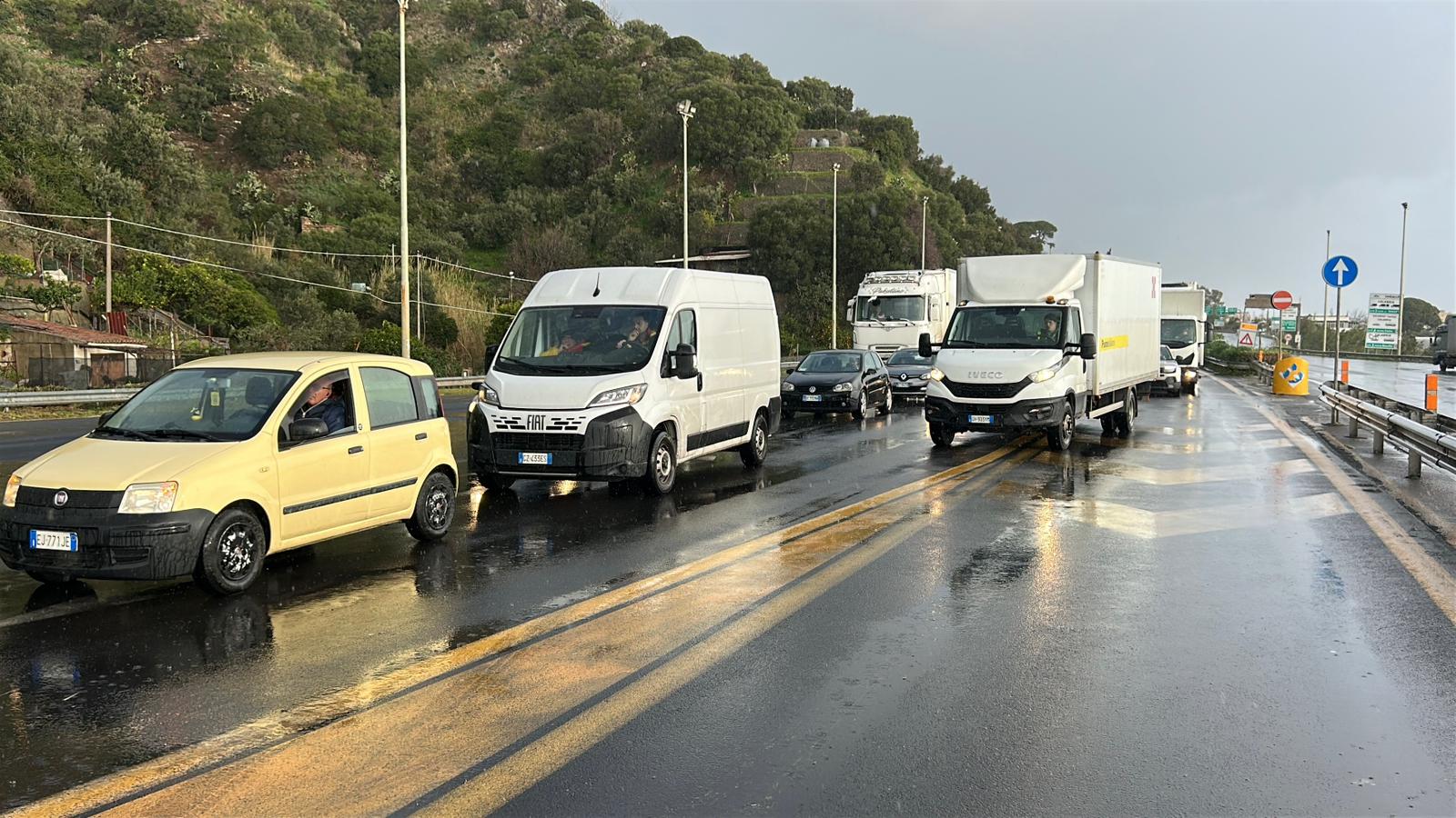 Autostrada A18 al momento della riapertura alla barriera di Messina