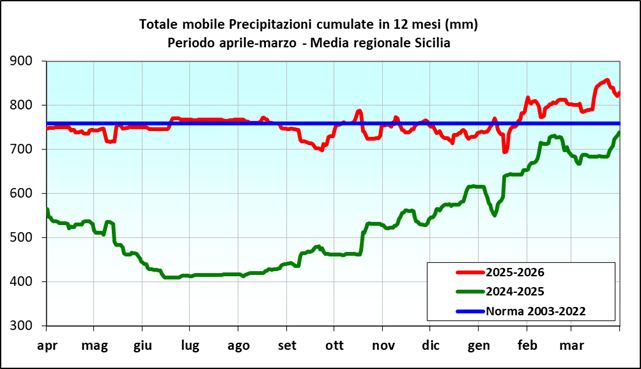 «Grazie a tutti questi eventi l'accumulo medio mensile è stimato in base ai dati SIAS ... intorno a 110 millimetri, a fronte di una norma di marzo pari a 81 millimetri per il periodo 2003-2022. La maggior parte del territorio regionale ha registrato accumuli superiori a 80 millimetri, con limitate aree con accumuli inferiori sulla fascia meridionale, nella parte interna della Piana di Catania e nella parte centro-meridionale della provincia di Trapani».