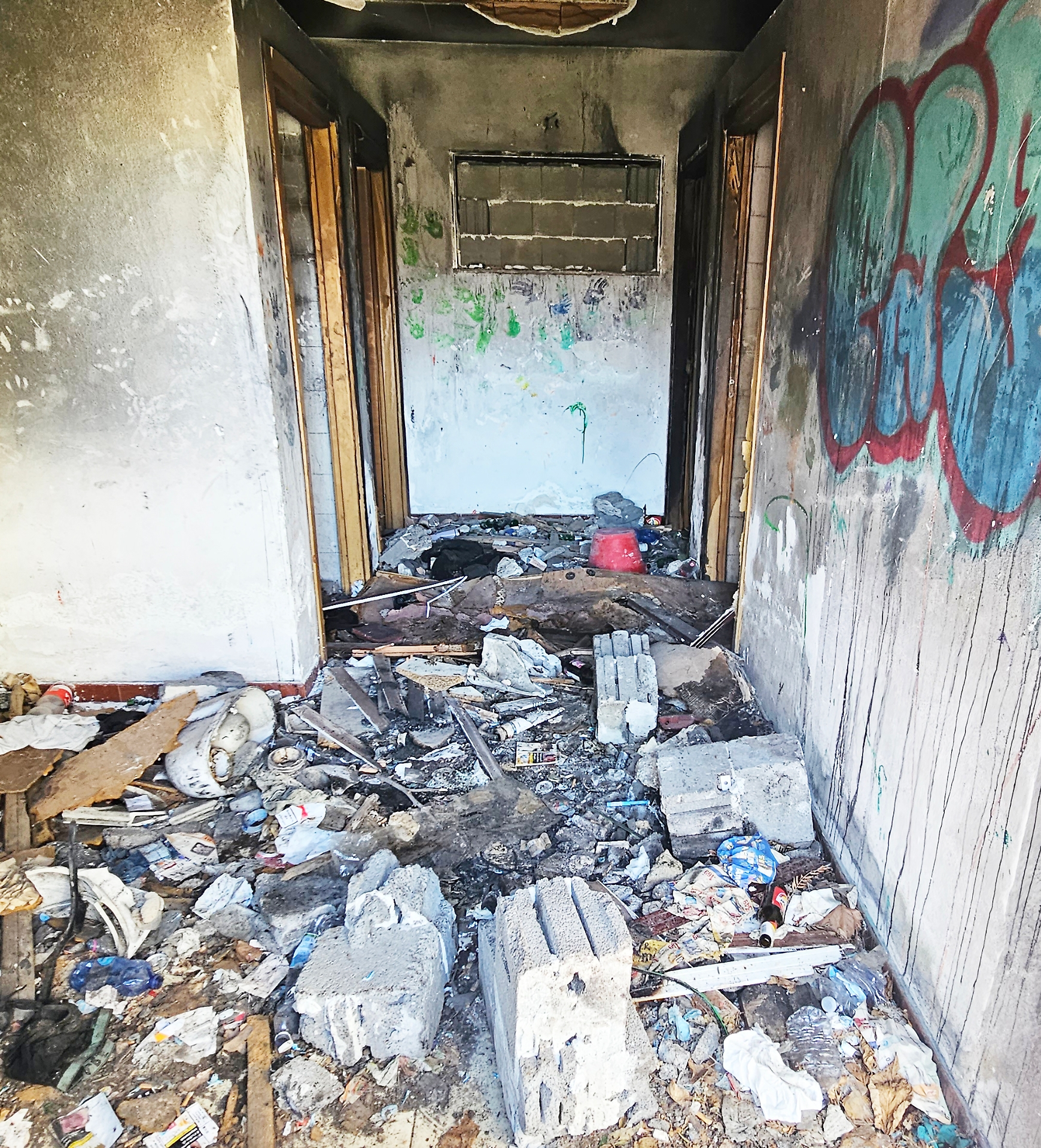 Dei bagni nemmeno a parlarne: un tempo, dopo che qualcuno aveva appiccato le fiamme per distruggere tutto, erano stati murati, inaccessibili, con le pareti esterne ravvivate da murales. Qualcuno ha aperto i varchi, dentro è un bailamme di macerie, bottiglie, preservativi, siringhe. In una delle ritirate, il cronista si è imbattuto in un ragazzo strafatto di crack, seduto tra le deiezioni altrui, incapace di parlare.