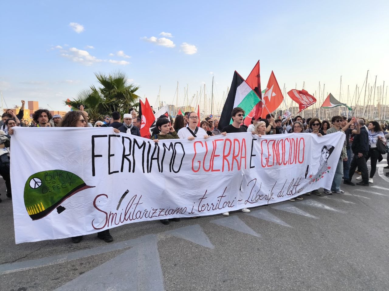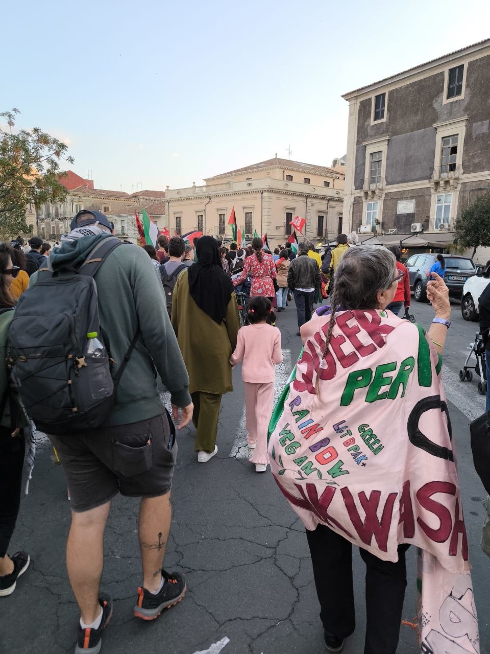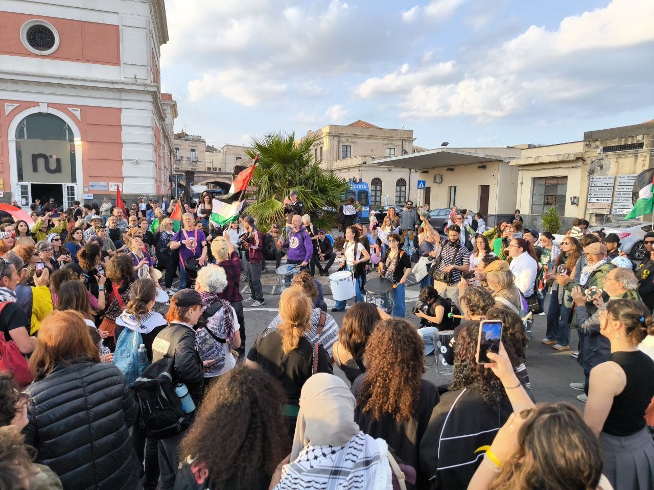 Oggi pomeriggio per le strade di Catania un corteo di circa un migliaio di persone ha portato sostegno e solidarietà agli equipaggi in partenza. Nessuna bandiera di partito, solo quelle palestinesi. Concentramento e partenza al porto di Catania, arrivo in piazza Stesicoro. «Le ragioni per salpare si sono moltiplicate - spiega Tony La Piccirella, uno degli organizzatori che si imbarcherà - in questi mesi abbiamo assistito a continue violazioni del diritto internazionale, la Palestina è ancora sotto assedio, i valichi sono chiusi, il Board of peace non ha risolto nulla e l'occupazione israeliana è avanzata, prendendo mezza Striscia di Gaza e ora il Libano. Non è una questione di solidarietà o umanesimo, ora iniziamo a capire che ci riguarda. E non solo per il carburante, la nostra condizione è più vicina a quella palestinese, per cultura e modo di vivere, di quanto i governi vogliono farci credere».