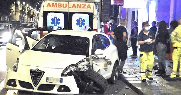 Un’Alfa Romeo, che pare avesse a bordo tre giovani, lanciata a tutta velocità sull’importante arteria del centro cittadino pare che abbia urtato prima un’utilitaria che stava procedendo con la freccia inserita per immettersi in via Istituto Sacro Cuore; dopo ha sbattuto sul muro e in parte sulla vetrina di un negozio, causando gravi danni, per terminare poi la folle corsa contro uno scooter fortunatamente solo parcheggiato, dunque senza nessuno a bordo.