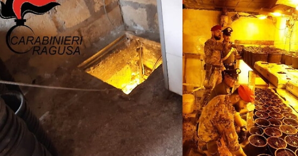 COMISO - Una piantagione con 177 piante di canapa olandese è stata sequestrata a Comiso (Ragusa) dai carabinieri della compagnia di Vittoria in un bunker nascosto da una botola in un capannone annesso all’abitazione di un agricoltore di 63 anni, Vincenzo Zago, che è stato arrestato in flagranza di reato per coltivazione e detenzione ai fini di spaccio di sostanze stupefacenti. La droga avrebbe potuto fruttare diverse decine di migliaia di euro. L'uomo deve anche rispondere di furto aggravato di energia elettrica. All’operazione hanno preso parte i carabinieri dello Squadrone Eliportato Cacciatori «Sicilia».