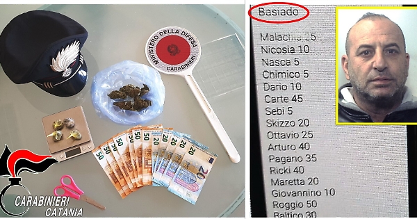 I militari lo hanno deciso di bloccato nel preciso istante in cui cedeva, sotto la propria abitazione, una dose di marijuana al cliente di turno. Perquisito sul posto, è stato trovato in possesso di un’altra dose di marijuana e di 90 euro in contanti, presumibilmente incassati dalle pregresse cessioni. Nella suia casa i militari hanno rinvenuto altri 20 grammi di marijuana e un bilancino di precisione, nascosti in camera da letto, nonché una lista di clienti, annotata sul memo dello smartphone sotto il titolo di “Basiado”, riconducibile verosimilmente al termine “Baseado” che tradotto in portoghese significa “spinello”. La droga e il denaro sono stati sequestrati, mentre l’acquirente è stato segnalato alla Prefettura di Catania per l’uso personale di sostanze stupefacenti.
