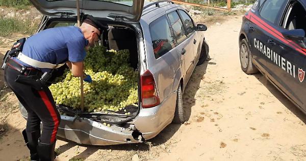 I Carabinieri della Stazione di Granieri hanno trovato 800 chilogrammi di uva da tavola, asportata nella nottata da ignoti ladri. In particolare i militari, che proprio in questo periodo concomitante con la maturazione del frutto hanno incrementato i servizi preventivi, così come anche auspicato nelle direttive prefettizie volte a garantire la sicurezza nelle aree rurali, sono stati chiamati dallo stesso proprietario che ha incredibilmente trovato nel proprio appezzamento di terra una Ford Focus contenente la sua uva, già asportata dalle piante.