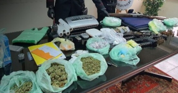 Trovati, inoltre, un giubbotto antiproiettile, un ordigno di fattura artigianale di circa 500 grammi, completo di miccia; un fucile semiautomatico con canna mozzata risultato rubato a Siracusa nel 1992; tre pistole semiautomatiche, alcune già cariche; un revolver con cinque proiettili nel tambuto; munizioni di vario tipo e calibro, anche da guerra; un chilo circa di cocaina, 40 grammi di crack, 70 circa di hashish, 280 circa di marijuana; materiale per i taglio e confezionamento dello stupefacente, tra cui anche una macchina per il sottovuoto.
