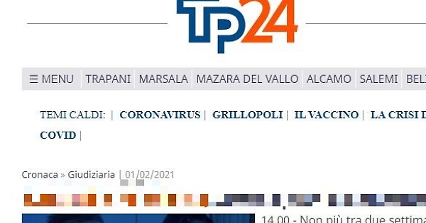 E’ iniziato a Marsala il processo a due persone accusate di tentata violenza privata e minacce, sui social, ai giornalisti della testata on line (tp24.it) per costringerla a eliminare la parte di un articolo su un incidente stradale mortale in cui si faceva riferimento ai precedenti penali della vittima, Calogero Bertoldo, 33 anni.