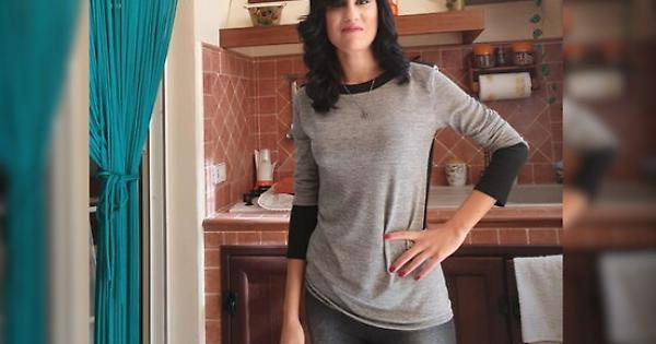 La ragazza indossava pantaloncini di colore nero e un top nero con una scritta dorata.