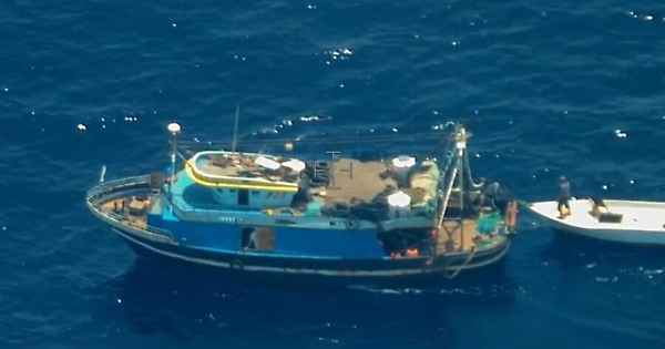 è stato scortato fino a Lampedusa (Ag). Due membri dell’equipaggio, per motivi ancora non chiari, si sono gettati in acqua, ma sono stati recuperati.