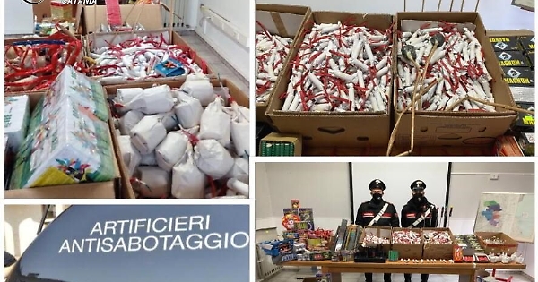 Il materiale era detenuto illegalmente e senza la minima condizione di sicurezza. Tra i botti sequestrati 51 "cipolle" del peso di 190 grammi l'una, tre cartoni di 'caramelle del peso di 20 grammi l’una, fuochi d’artificio professionali come sette scatole di «thunder» con ognuna 12 pezzi, 10 di «mattarello» e cinque confezioni di micce per innesco, due fuochi d’artificio artigianali di 86 grammi l’uno.