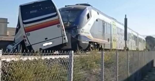 Vittoria, treno investe pullman bloccato al passaggio a livello