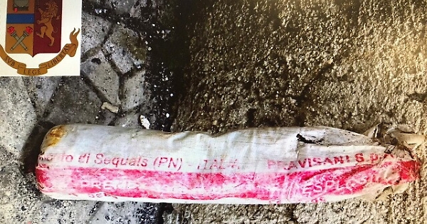 L'esplosivo, nascosto con un sottile rivestimento in gesso e stucco facilmente asportabile, è stato rimosso dal Nucleo Artificieri della Questura di Catania per la successiva distruzione.