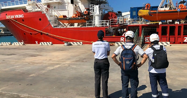 PORTO EMPEDOCLE - Ispettori della Guardia Costiera, specializzati in sicurezza della navigazione, hanno sottoposto la nave "Ocean Viking", di bandiera norvegese e operante per conto dell’organizzazione non governativa SOS Mediterranee, a un’ispezione per verificare l’ottemperanza alle norme in materia di sicurezza della navigazione, protezione dell’ambiente e tutela del personale navigante.