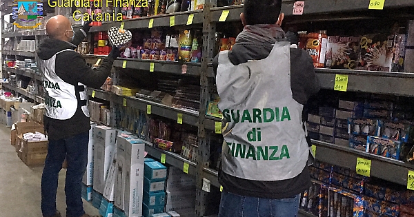 CATANIA - I militari del Comando Provinciale della Guardia di Finanza di Catania hanno sequestrato, all’interno di una attività commerciale nella zona industriale di Misterbianco, oltre 110 mila articoli pari ad oltre una tonnellata e 200 kg di artifizi pirotecnici pronti per essere immessi nel mercato.
