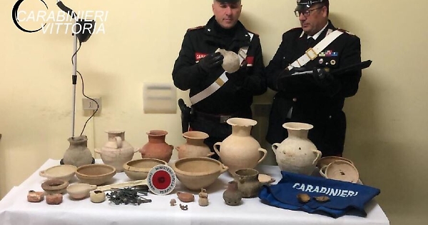 I militari delle Stazioni di Vittoria, Scoglitti, e del Nucleo Operativo e Radiomobile della Compagnia di Vittoria, con il supporto di personale specializzato del Comando Tutela Patrimonio Culturale e dello Squadrone Eliportato Cacciatori “Sicilia”, hanno concentrato la loro attenzione su alcuni sospettati e ieri mattina è scattato il blitz che ha portato al recupero dei reperti e alla denuncia in stato di libertà di Sciortino Orazio, 51enne, Giliberto Danilo, 36enne, e S.G. 23enne.