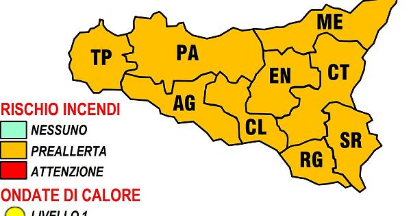 La Sicilia si tinge di arancione nel bollettino diramato dalla Protezione civile regionale sul rischio incendi e ondate di calore. Una preallerta che era già stata diramata e che persiste dalla mezzanotte di oggi e sino alle successive 96 ore. Ecco nel dettaglio la situazione in tutte le nove province dell'Isola e in particolare nelle città di Palermo, Catania e Messina per quanto riguarda le temperature minime e massime percepite.