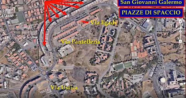 L’indagine, coordinata dalla Direzione distrettuale antimafia e condotta dal nucleo operativo della compagnia carabinieri di Catania Fontanarossa, mira a disarticolare i diversi sodalizi criminali che gestivano 12 imponenti «piazze di spaccio» del rione San Giovanni Galermo. Secondo la Dda etnea, «le diverse squadre che gestivano le "piazze di spaccio" godevano di una chiara autonomia sotto il profilo della competenza territoriale e della gestione organizzativa, ma agivano comunque sotto il diretto controllo del gruppo Nizza aderente alla "famiglia" di Cosa nostra catanese dei Santapaola-Ercolano, che imponeva ai "capi piazza" il rifornimento esclusivo dello stupefacente dal medesimo gruppo dei costi e i quantitativi di droga da acquistare».