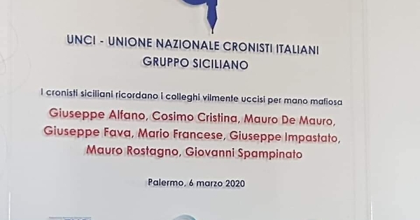 A nome della Città di Palermo è intervenuto l’assessore comunale alle Attività produttive Leopoldo Piampiano. «Prosegue il percorso dell’Unci siciliana sul tema della memoria. La data scelta per l'inaugurazione della targa non è casuale. Il 6 marzo 1942, infatti - ha sottolineato Leone Zingales, ideatore dell’iniziativa - è la data di nascita di Mauro Rostagno, ucciso nel 1988 all’età di 46 anni. Oggi ricordiamo anche Giuseppe Francese, il più piccolo dei figli di Mario, che si è tolto la vita all’età di 36 anni nel settembre del 2002 poco prima della conclusione del processo d’appello contro i carnefici del cronista del Giornale di Sicilia. Giuseppe diede impulso all’indagine sulla morte del padre con puntuali dossier e scritti significativi».