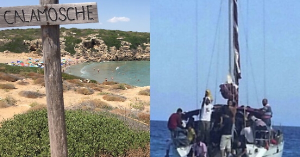 Sbarco di migranti in barca a vela sulla spiaggia di Calamosche