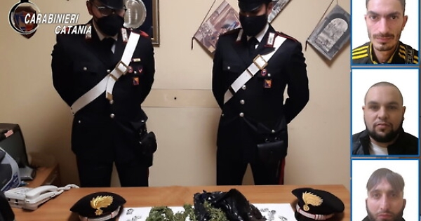 PATERNO' - I Carabinieri della Compagnia di Paternò unitamente a quelli del locale Nucleo Cinofili hanno arrestato, nella flagranza, il 25enne Agatino Russo, il 28enne Antonino Carmelo Fisicaro e il 22enne Daniele Cavallaro, ritenuti responsabili di detenzione ai fini di spaccio di sostanze stupefacenti.