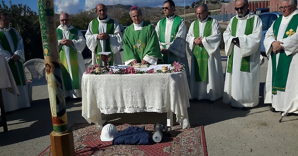 Il clero gelese a mezzogiorno si è ritrovato lungo la strada statale per Catania, nei pressi dell'’Enimed, per celebrare messa con gli operai dell’indotto della raffineria. A celebrare messa è stato il vescovo della diocesi di Piazza Armerina mons. Rosario Gisana.