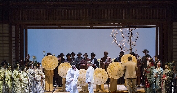 CAGLIARI, 7 APR - L'eleganza, la raffinatezza, la grazia del Giappone del primo Novecento rivivono sulla scena in Madama Butterfly. Lunghi applausi al Teatro Lirico di Cagliari per il debutto del capolavoro di Puccini, tra le opere più amate, in cartellone fino al 15 aprile. La "tragedia giapponese", incentrata sulla figura della giovanissima e innocente geisha, sedotta e sposa per gioco, del tenente americano Pinkerton, da lui abbandonata e infine suicida, torna a Cagliari stavolta nello storico allestimento del Teatro del Giglio di Lucca firmato dal suo direttore artistico Aldo Tarabella, rappresentato in occasione del centenario dell'opera. Successo annunciato per il titolo di forte richiamo e gran pienone per il secondo appuntamento della Stagione lirica del Teatro guidato dal sovrintendente Claudio Orazi. Il regista sottolinea l'incontro tra Oriente e Occidente, già sotteso nella partitura, attraverso accostamenti di elementi significativi dei due mondi.