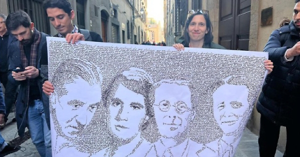 FIRENZE, 06 MAR - Un'opera, realizzata in calligraphy art da Francesca Grosso coi volti di Piero Calamandrei, Maria Enriques Agnoletti e dei fratelli Carlo e Nello Rosselli, che sabato ha percorso il corteo della manifestazione antifascista a Firenze, è stata consegnata ai rappresentanti di istituto del liceo Michelangelo per la sua esposizione in mostra. Lo fa sapere l'associazione InOltre Alternativa Progressista promotrice dell'iniziativa e dell'opera dal titolo 'Ora e sempre'. Durante la manifestazione di sabato scorso diverse personalità del mondo politico e sindacale, tra cui Elly Schlein, Maurizio Landini, Giuseppe Conte, Nicola Zingaretti, Peppe Provenzano, Roberto Speranza e Laura Boldrini, hanno scelto di farsi fotografare insieme all'opera come segno di sostegno. La rappresentazione artistica di Calamandrei, Agnoletti e Rosselli è composta dalle parole del discorso di Calamandrei ai giovani di Milano sulla Costituzione e dall'Epigrafe rivolta al camerata Kesserling. Dopo il corteo l'associazione InOltre ha consegnato l'opera ai rappresentanti di istituto del liceo Michelangelo che nei prossimi giorni faranno richiesta alla preside per esporla in via permanente nel corridoio principale dell'istituto. "Di fronte alle aggressioni - ha detto Giordano Bozzanca presidente InOltre - abbiamo sentito, in una data come il 4 marzo, in cui ebbe inizio il progetto di Costituzione dell'Assemblea dei 75 di rispondere e condannare la violenza neofascista cercando di elevare il dibattito anche sui valori costituzionali attraverso l'arte".