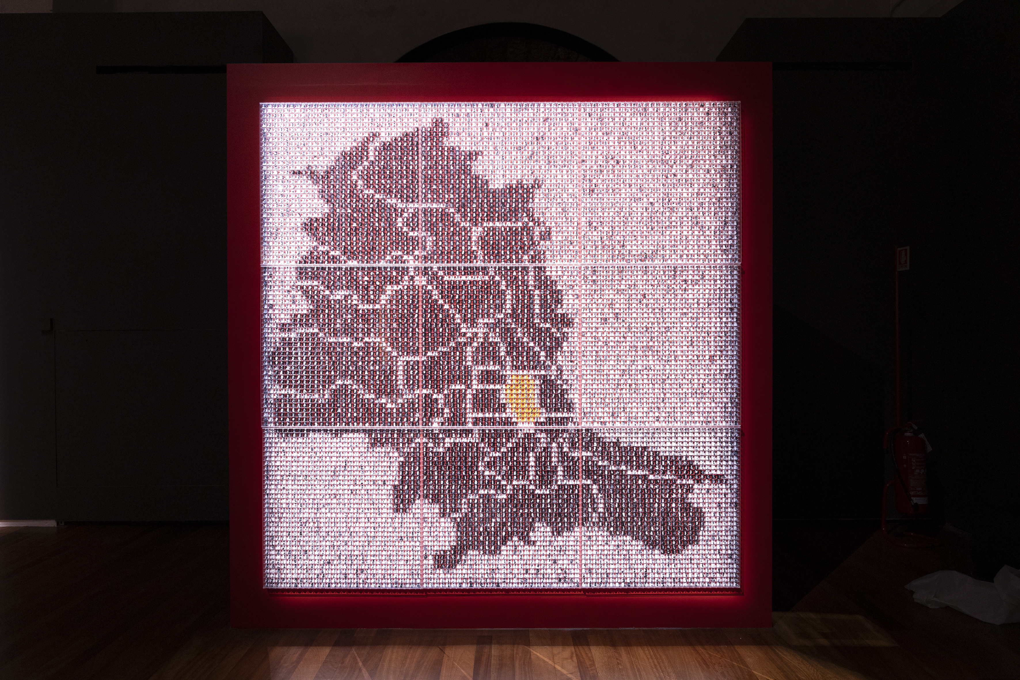 L’opera IX Nona sta a fianco della grande opera ∞Lights, che domina in fondo allo spazio espositivo. Realizzata dall’artista in occasione della mostra a Palermo per porsi in dialogo con la grande spiritualità della Cappella Palatina attraverso la rinascita e la rigenerazione.