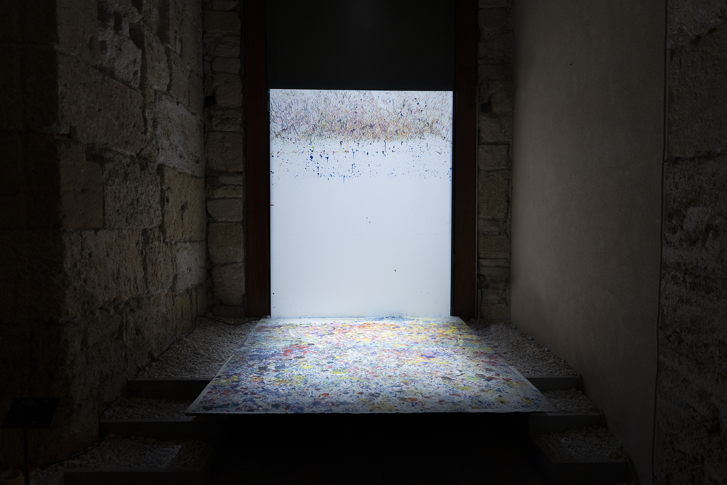 Ma PUNCTUM è anche la simbiosi tra Omar Hassan e Palazzo Reale nel segno del puro site-specific: non poteva essere diversamente se l’incontro avviene tra un artista di madre cristiano-cattolica e padre musulmano, che lo hanno predisposto alla tolleranza e al nuovo e il palazzo “fabbrica di idee” sin dai tempi di Federico II, che custodisce la meravigliosa Cappella Palatina, simbolo per antonomasia dell’integrazione tra culture.