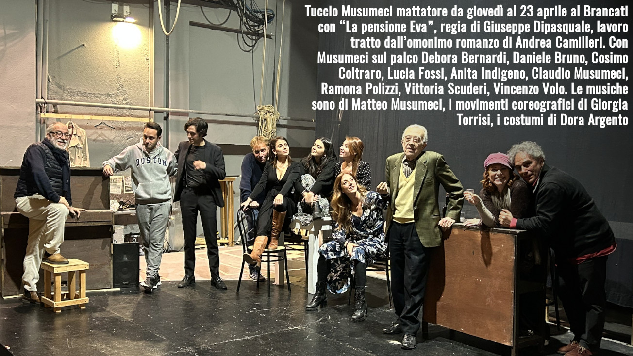 L’altro pezzo di storia, di costume e di teatro specialmente, Tuccio Musumeci, sarà protagonista di “La pensione Eva” in scena al Teatro Brancati di Catania da giovedì prossimo, complice indispensabile Giuseppe Dipasquale che ne firma regìa e adattamento, e di quelle singolari “scuole di vita”, odorose di permanganato e dei “pessimi profumi” delle ragazze - Tuccio fu disciplinato, affezionato frequentatore.
