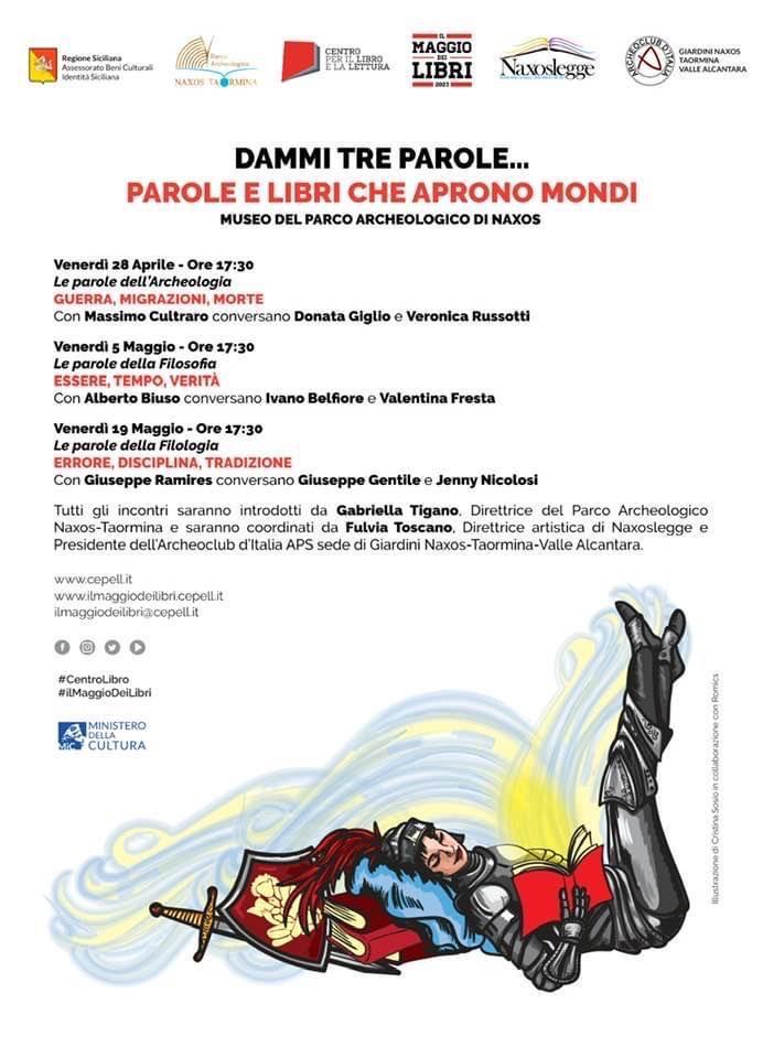 Anche il Parco Archeologico Naxos Taormina partecipa a “Il maggio dei libri”, manifestazione promossa dal Ministero della Cultura. Tre appuntamenti ospitati al Museo di Naxos (ore 17.30) e realizzati in collaborazione con Naxoslegge e la locale sezione dell’Archeoclub. Si svolgeranno nella sala al piano terra che riunisce una prima raccolta dei reperti archeologici rinvenuti nel sito della prima colonia greca in Sicilia. Introdotti dalla direttrice del Parco, l’archeologa Gabriella Tigano, saranno coordinati da Fulvia Toscano, direttrice artistica del festival Naxoslegge e presidente della sezione Archeoclub di Giardini Naxos, Taormina e Valle Alcantara.