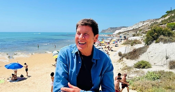 Gianni Morandi torna in Sicilia, tappa alla Scala dei Turchi «meraviglia assoluta», prima del concerto di Taormina