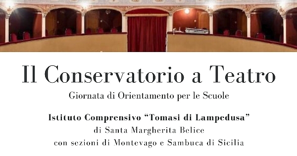 In questa ottica lunedì 6 Maggio alle ore 16,00 presso il Teatro L’Idea di Sambuca di Sicilia, il Conservatorio ha in programma una importante giornata di orientamento intitolata “Il Conservatorio a Teatro” destinata agli studenti dell’Istituto Tomasi di Lampedusa di Santa Margherita Belice (le relative sezioni plessi di Montevago e Sambuca); con l’occasione verrà inaugurato e presentato il nuovo Pianoforte da concerto acquistato dal Conservatorio e destinato al Teatro di Sambuca con cui si darà il via ad una importante collaborazione istituzionale, partendo proprio dalle Scuole, alla presenza del Sindaco della città Giuseppe Cacioppo, dei vertici del Conservatorio, Presidente Giuseppe Tortorici, Direttore Riccardo Ferrara, Vice direttrice Mariangela Longo, della dirigente scolastica Gabriella Scaturro, e, per il Teatro, del Presidente Antonio Giovinco e del consigliere referente per le comunicazioni Filippo Tardo.