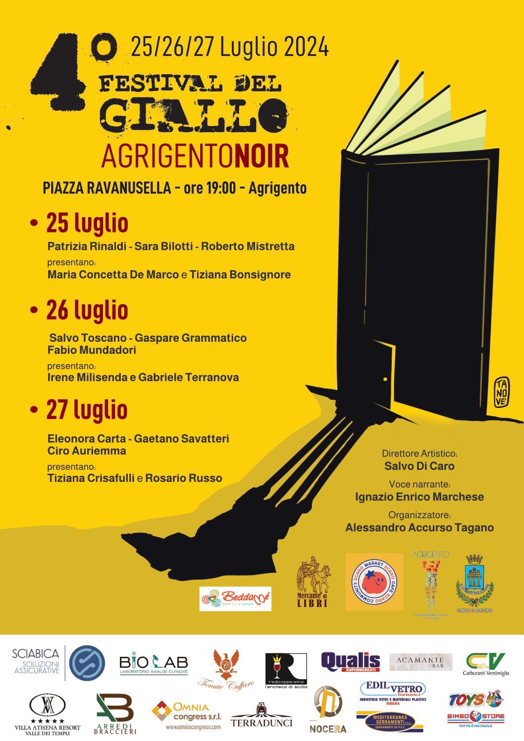 La Libreria Il Mercante di Libri ha organizzato la 4ª edizione del Festival del Giallo AgrigentoNoir. Alla presentazione che si terrà ad Agrigento giovedì 18 luglio (ora 11, Piazza Ravanusella) saranno presenti il direttore Artistico Salvo Di Caro, il narratore Ignazio Enrico Marchese e l'organizzatore Alessandro Accurso Tagano (nella foto) e i ragazzi della Cooperativa Scaro Cafè, che illustreranno le finalità e le peculiarità dell’evento culturale. Il Festival del Giallo AgrigentoNoir si distingue per la qualità e la varietà degli ospiti e dei temi trattati. Nove gli scrittori del panorama regionale e nazionale del genere noir e giallo, che condivideranno con il pubblico le loro opere, esperienze e riflessioni sul mondo della letteratura noir.