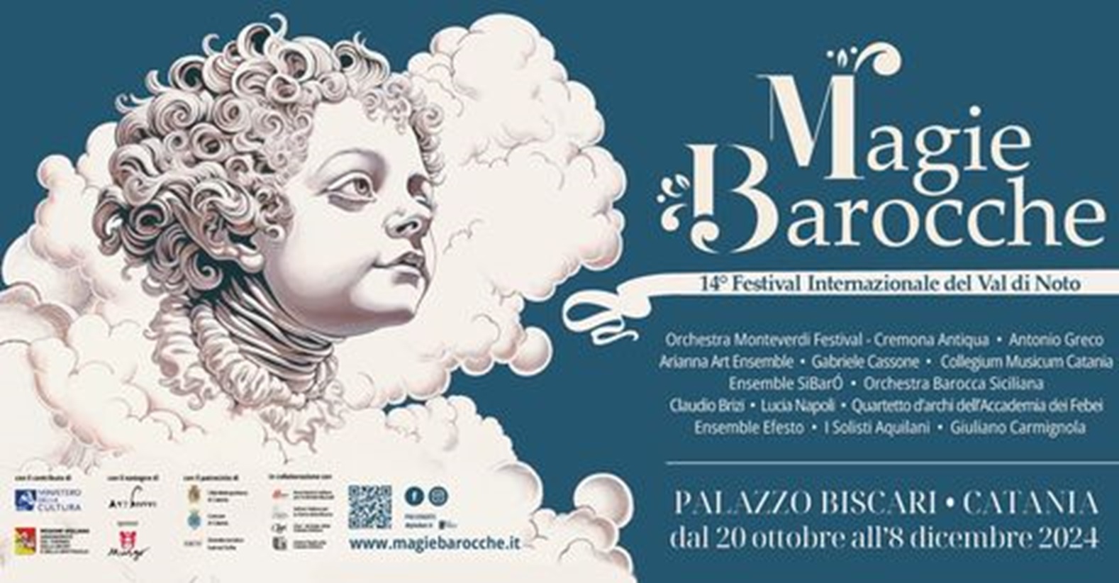 Il Festival Internazionale del Val di Noto Magie Barocche, nelle persone del suo presidente Salvatore Maugeri e del direttore artistico Agostino Ziino, insieme al loro prezioso staff, è lieto di annunciare al fedele pubblico il tanto atteso annuale appuntamento, giunto alla sua gloriosa 14a edizione. Domenica 20 ottobre, infatti, Magie Barocche si ripresenta, nel sontuoso e monumentale Palazzo Biscari di Catania, con due concerti nel segno della immortale musica del «divin Claudio» Monteverdi.