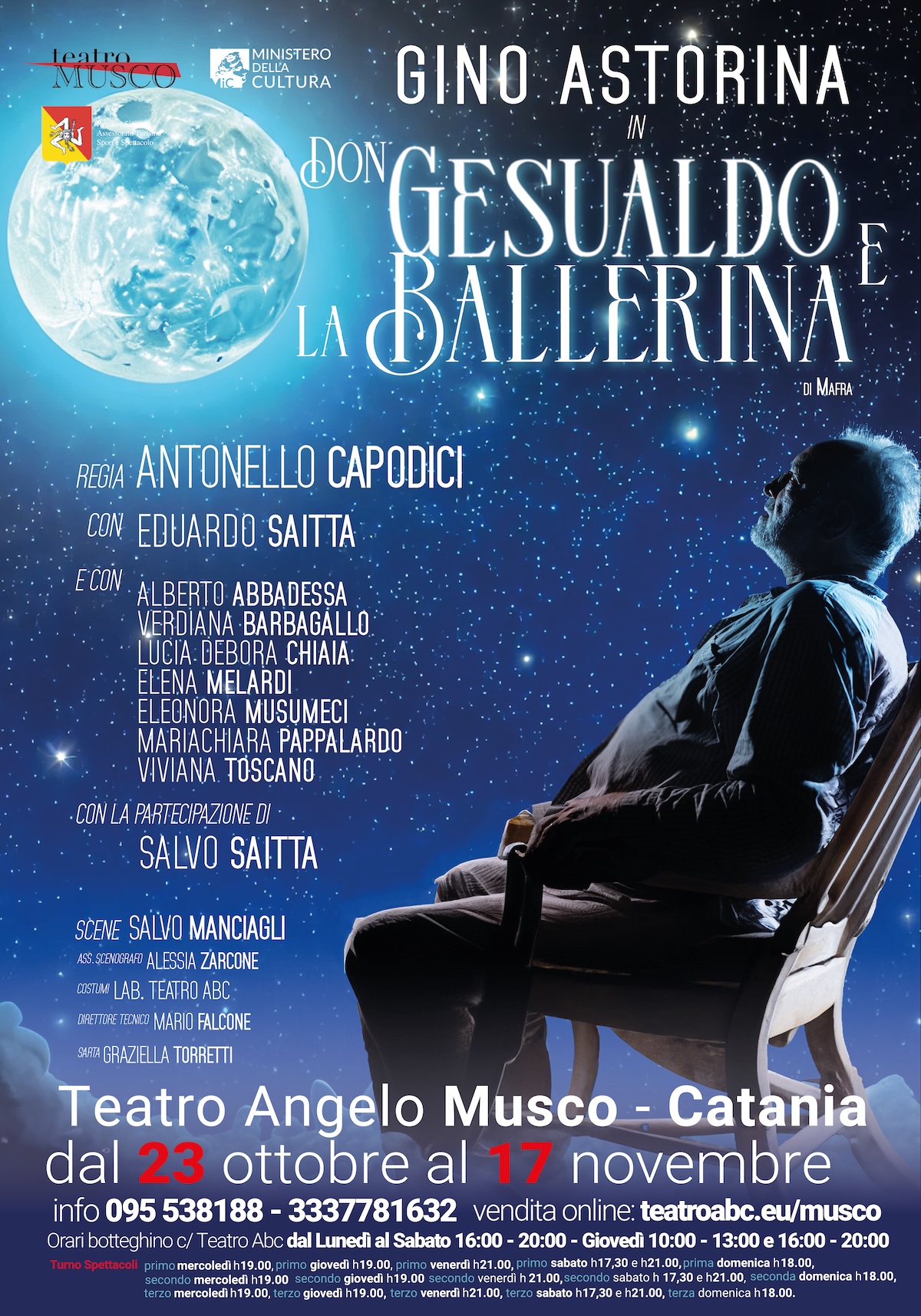 Gino Astorina terrà a battesimo il cartellone 2024/2025 del Teatro Angelo Musco con una nuovissima produzione diretta da Antonello Capodici. Da oggi il popolare attore catanese è in scena con la commedia “Don Gesualdo e la ballerina”. Al suo fianco Eduardo Saitta e un ricco cast formato da Alberto Abbadessa, Verdiana Barbagallo, Lucia Debora Chiaia, Elena Melardi, Eleonora Musumeci, Mariachiara Pappalardo e Viviana Toscano, con la partecipazione di Salvo Saitta. Le scene sono di Salvo Manciagli, i costumi del Laboratorio Teatrale Abc.