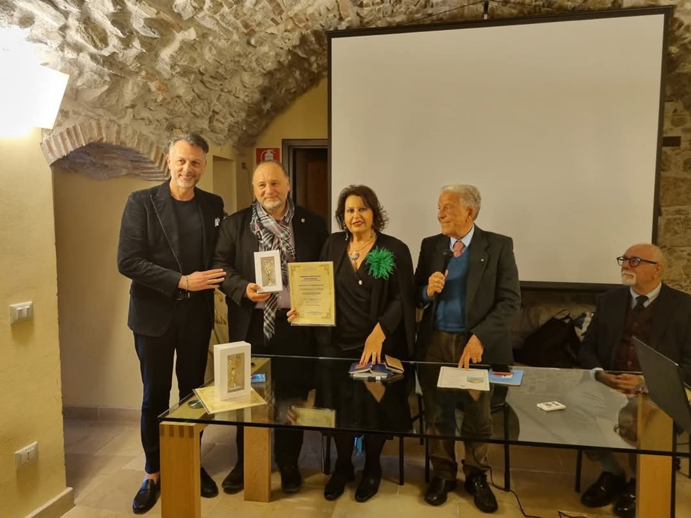 Il secondo Premio dell’Accademia infatti è stato consegnato al professore Mario Bolognari, già Ordinario di Antropologia e Direttore del Dipartimento di Ciiviltà Antiche e Moderne dell’Università di Messina, già parlamentare e sindaco di Taormina dal professor Carlo Turchetti e dal dottor Sergio Spadoni per la sua intensa attività di ricerca e docenza e per il suo impegno sociale.